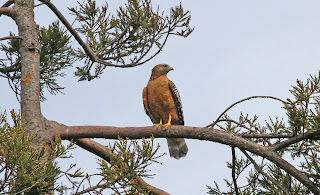 A late afternoon visit produced good numbers of raptor with at least five Red Kite, two Common Buzzard and a single Eurasian Sparrowhawk all seen. The Sparrowhawk gave incredibly close views as it sat in the winter sunshine warming itself. Interestingly a male House Sparrow perched extremely close sang out loud despite its dangerous neighbour in full view.